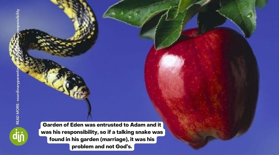 While my child is under my care, I have authority and influence over him and God has entrusted ME to “cultivate and guard” him, and not the Sunday School teacher or the church pastor. Garden of Eden was entrusted to Adam and it was his responsibility, so if a talking snake was found in his garden (marriage), it was his problem and not God’s.
